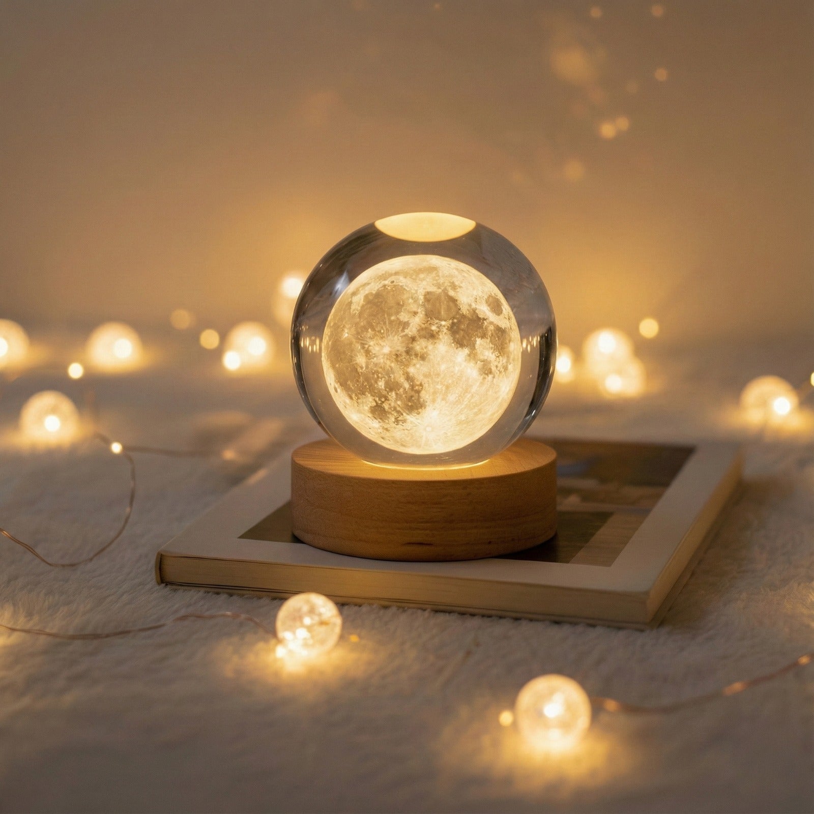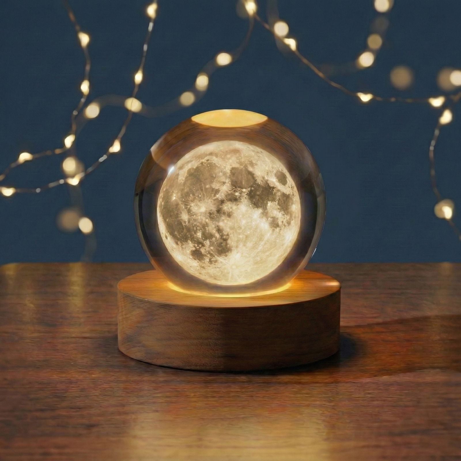 Create a dreamy atmosphere instantly with this stunning 3D Moon Crystal Ball. It’s not just a lamp; it’s a glowing piece of art. The precision laser engraving captures every crater and texture, floating inside a flawless, solid crystal sphere. Perfect for setting a relaxing mood or acting as a comforting nightlight, it sits on a natural wooden base that emits a warm, golden hue. It’s the ultimate thoughtful gift for stargazers, romantics, or anyone needing a little extra light in their life.